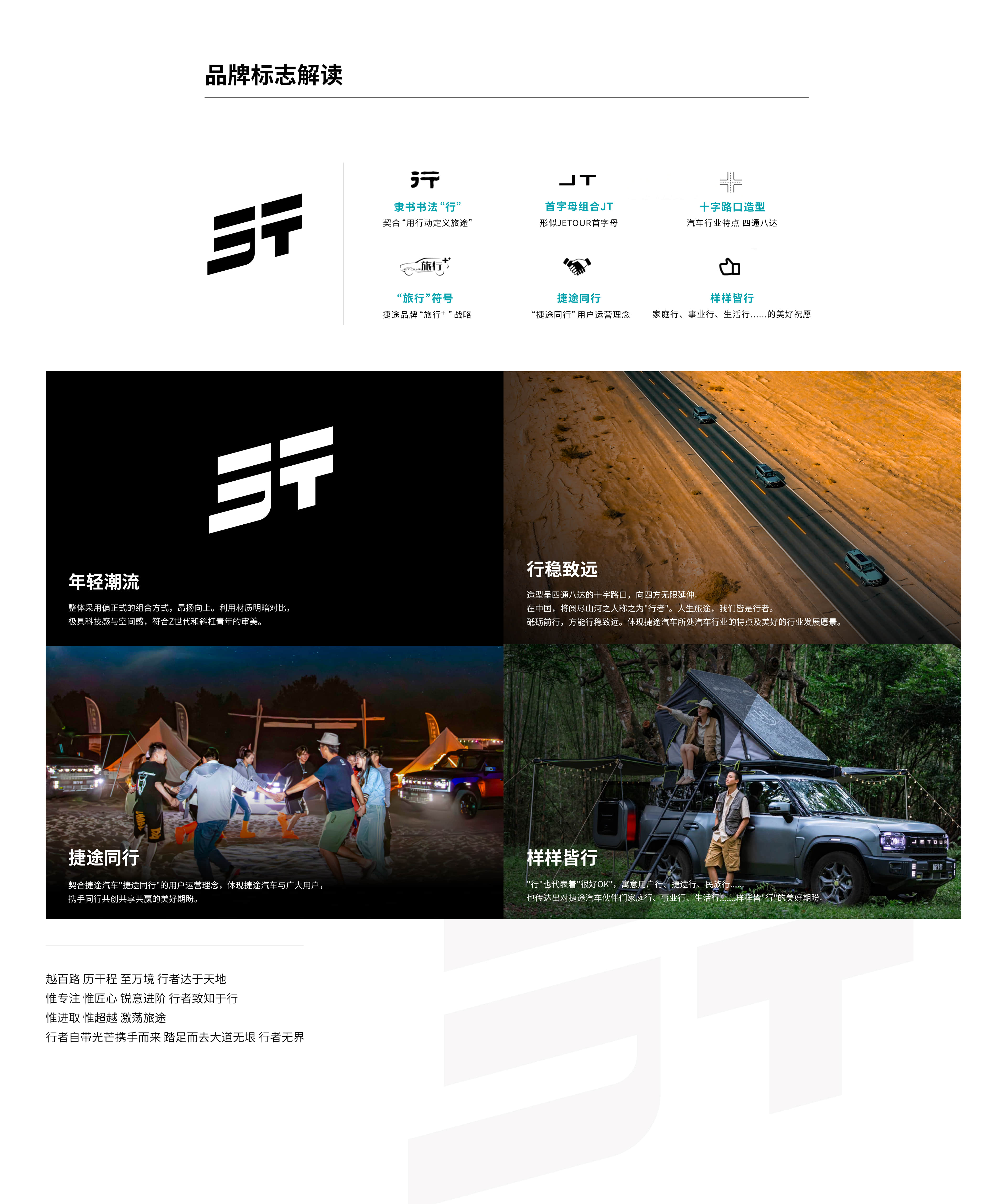 基于奇瑞控股二十年造车技术积累,以及对休闲旅游常态化、互联网生态、三胎政策下新生代消费者的深刻洞察,捷途汽车于2018年应运而生。捷途汽车专注旅行⁺细分市场,以场景化、生态化、平台化为产品研发理念,实现65个月累销100万辆,创造了新锐SUV品牌发展新速度,成为传统汽车品牌的“新势力”。