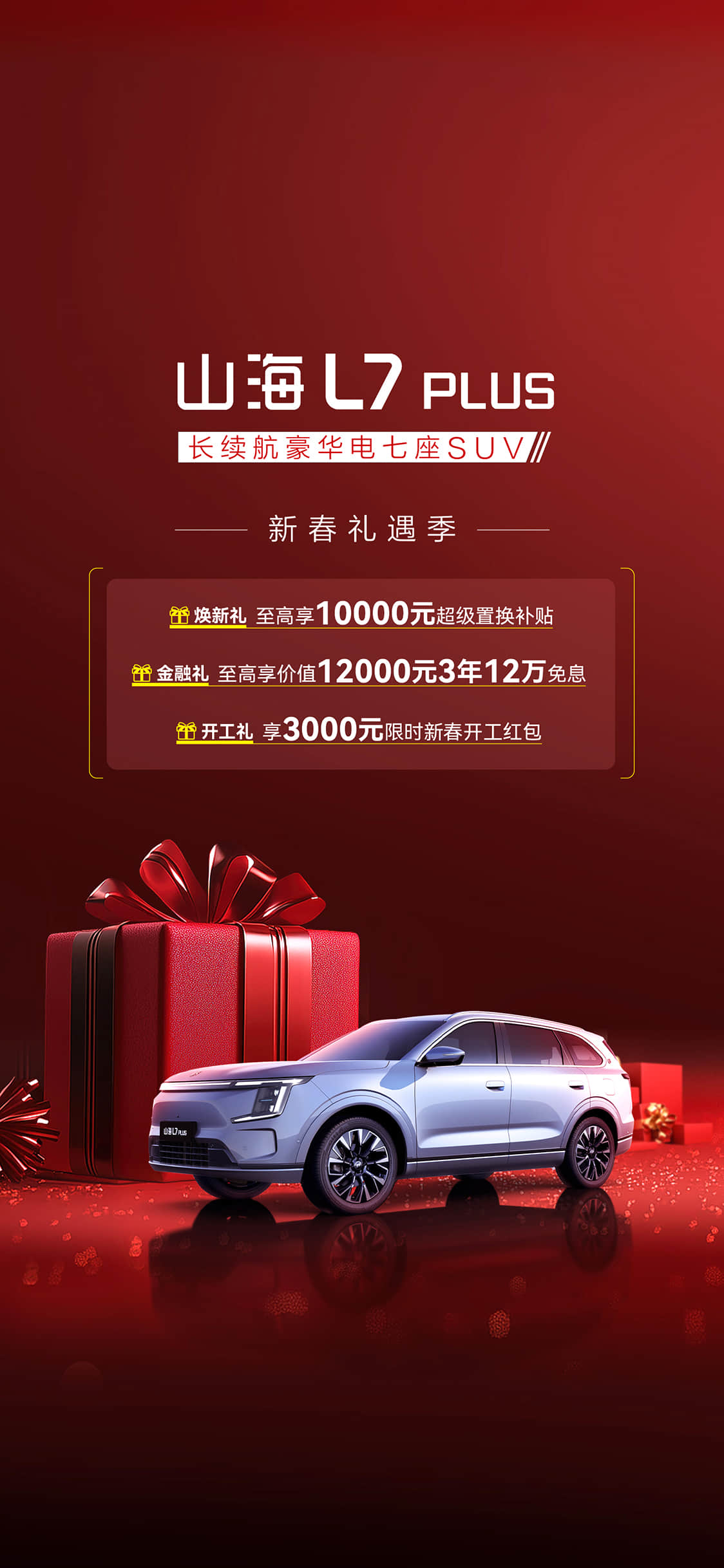 金融礼: 仅山海L7 PLUS 220KM旗舰版享受3年12万免息,其余版型享受3年8万免息。